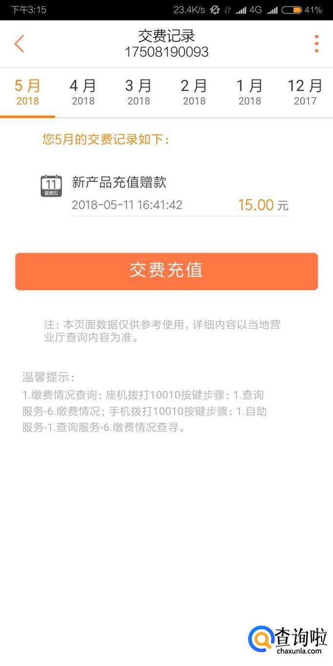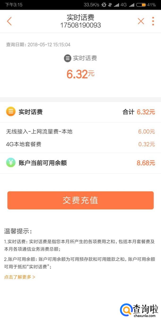 最后就可以看到联通的实时话费和缴费记录了。