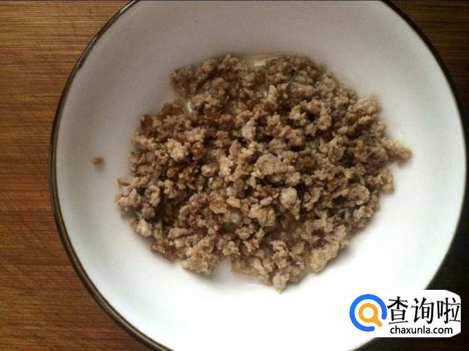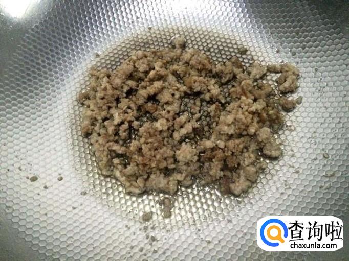起锅烧热,下油,下肉末炒至变色后加适量盐起锅。