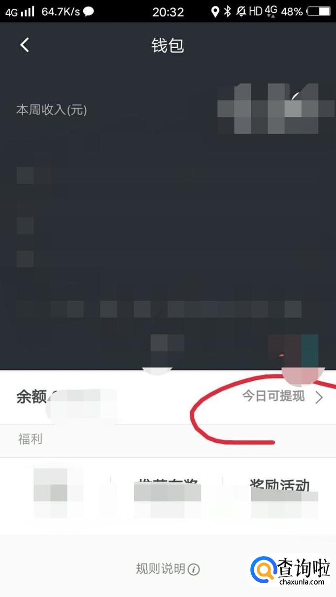 弹出如下图所示的界面后,点击余额可提现,这样就可以实现提现操作了。