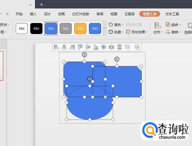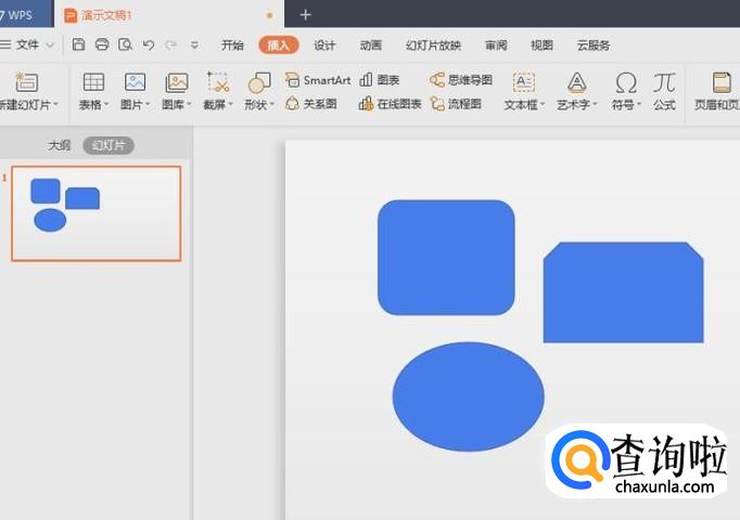 首先,我们打开一个含有多个图形的wps演示文档,如图所示;