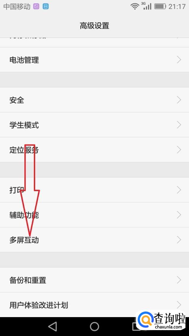在高级设置中点击多屏互动,将手机靠进电视机搜索到设备后就能实现投屏。
