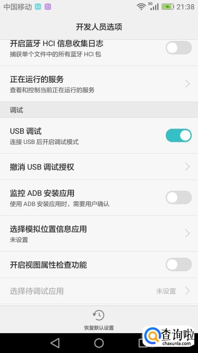 通过数据线将手机连接到电脑上。手机连接到电脑后要将手机的USB调试开关打开。