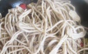 起锅烧水,水开后放入莜面,莜面是在菜市场买的做好的莜面,约煮个三分钟,将莜面捞出沥干备用。