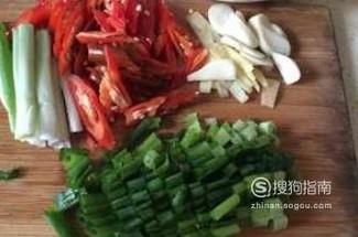 将小葱、姜、蒜 切碎,辣椒切段或者切片备用,顺便切一点黄瓜丝。