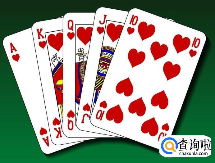 (8)同花顺:花色相同的顺子,黑桃456、红桃789。