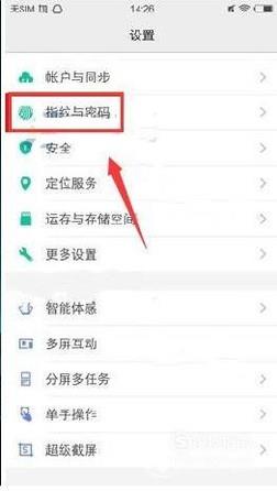 在设置中找到指纹与密码后,点击进入到指纹与密码的选项中,我们就可以点击开启指纹解锁,我们就可以采集指纹信息了。