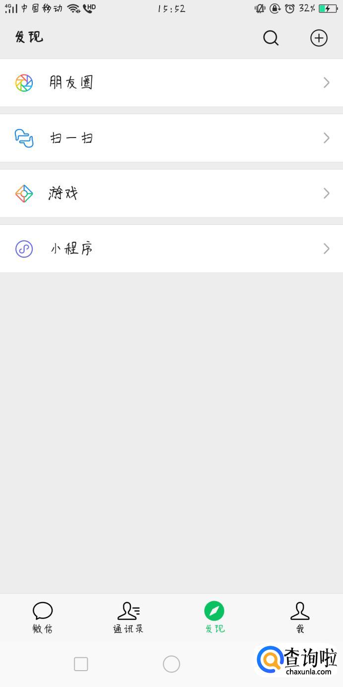 我们先打开微信,先点击底端的菜单栏中的“发现”,然后点击“小程序”。