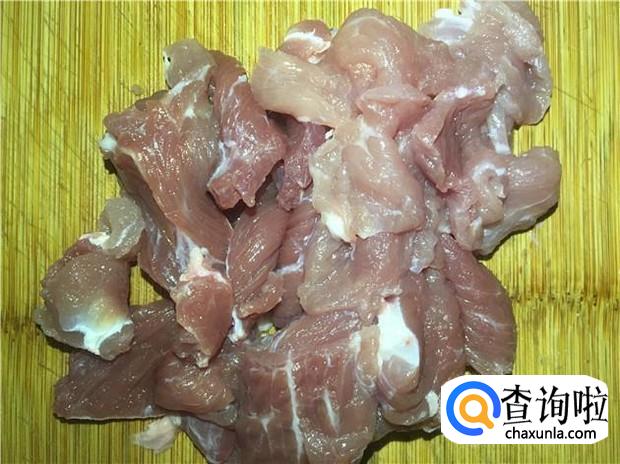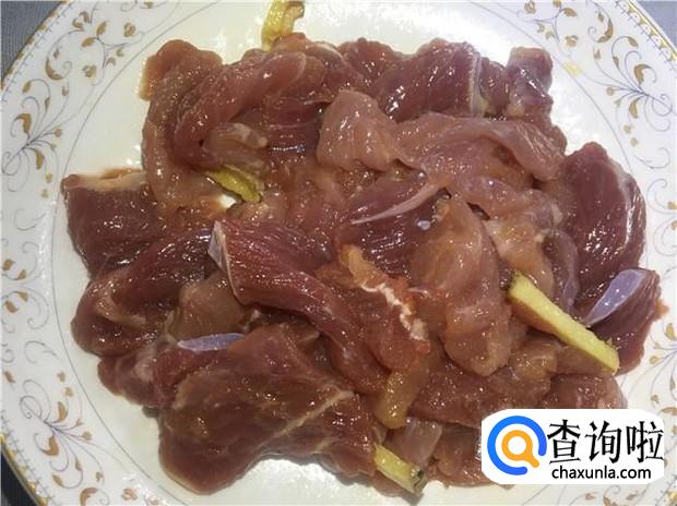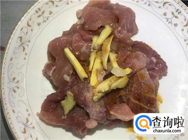 瘦肉加入适量的花生油、酱油、姜丝,搅拌均匀,腌制一会。