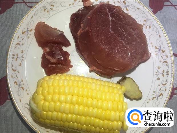 把煮粥的食材准备好:瘦肉适量、甜玉米一根、姜适量。