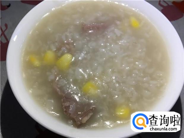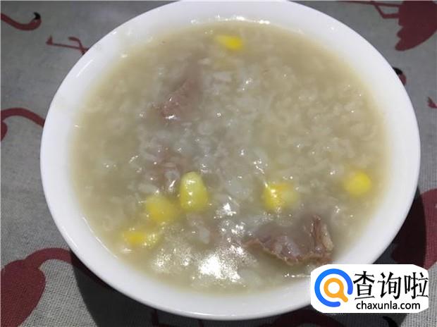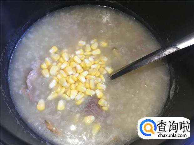 然后再倒入玉米粒,搅拌均匀,再按煮粥模式把玉米粒给煮熟。最后加入适量的盐和鸡精调味,一碗香甜的瘦肉玉米粥就做好了。