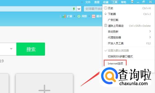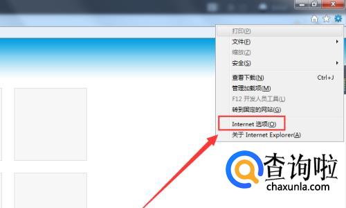 在拉下菜单中选择【Internet设置】;