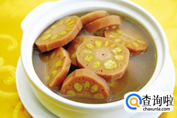 将绿豆洗净水泡半日,滤干,胡萝卜洗净,切碎捣泥,二物加适量白糖调匀待用。将藕洗净,在靠近藕节的一端用刀切下,切下的部分留好。将调匀的绿豆萝卜泥塞入藕洞内,塞满塞实为止。再将切下的部分盖好,用竹签或线绳插牢或绑好,上锅水蒸熟,可当点心吃。经常食用。降低血脂,软化血管。主治高血脂。