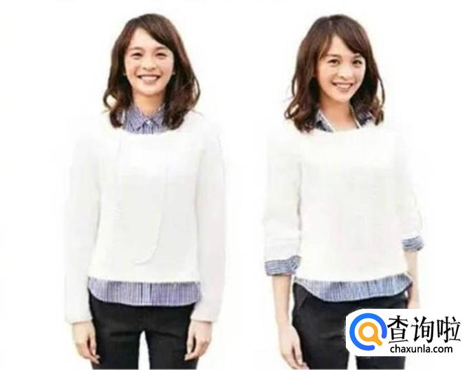 V领更加显瘦。V领有三个效果:颈部更加修长,显脸小,显高。咱们可以选择V领衬衫,V领针织衫,V型项链等等……V字型也会让人看起来更加精神,越好看。要是圆脸的妹子千万不要选择圆领的衣服哦,它会让你的脸蛋看起来更加有肉。