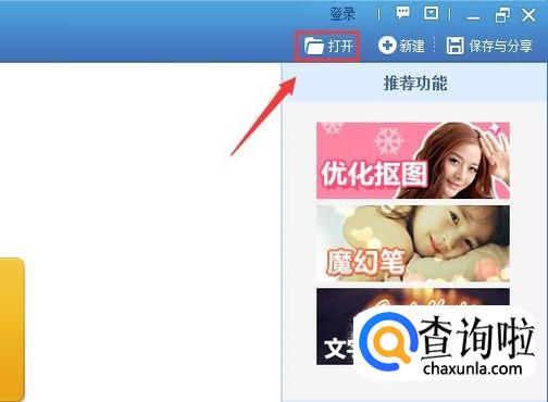 打开美图秀秀后,在打开的界面内找到打开选项,如图所示: