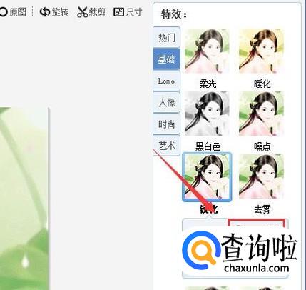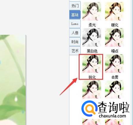 点自己自然美肤后,再找到基础选项,并在基础选项内找到锐化选项,如图所示: