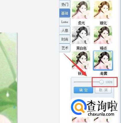 调节清晰度滑杆为最大,然后在找到基础选项,在基础选项内找到去雾选项,如图所示: