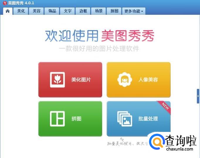 在桌面上找到美图秀秀的快捷图标,双击打开该软件,进入美图秀秀的操作界面,如图所示: