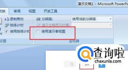 在放映的那里就可以看到使用演示者视图。