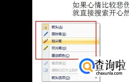 然后我们就可以在放映中使用到各种功能了,点击笔即可以在PPT上书写备注。