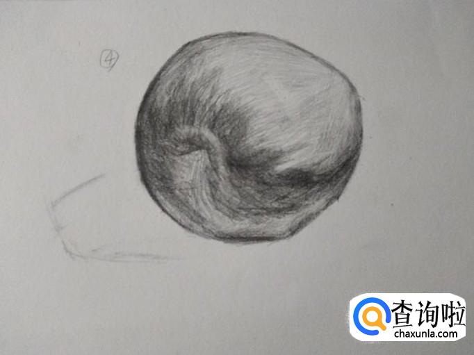 画灰面。用颜色不太重的笔,按照苹果的纹理、光源、形态,均匀的铺调子。勾画出基本形态。