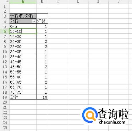 之后,点击分数下的任意一个单元格。可以在界面上方的单元格中看到将字段分组的选项,点击它。在对话框中将起始于设置为0,终止于设置为100,步长设置为5.设置好了点击确定就可以了。