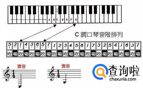 (以下音阶排列是以C大调复音口琴为例)