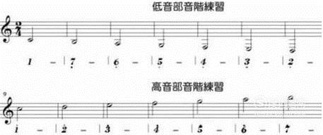 当你已经练习完中音部音阶后,接下来让我们再继续完成低音部与高音部的音阶。