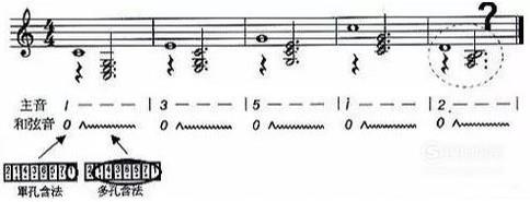 主音是最右边的一孔,请注意舌头尽量不要沾到主音的琴格上来,否则会发生压音现象。