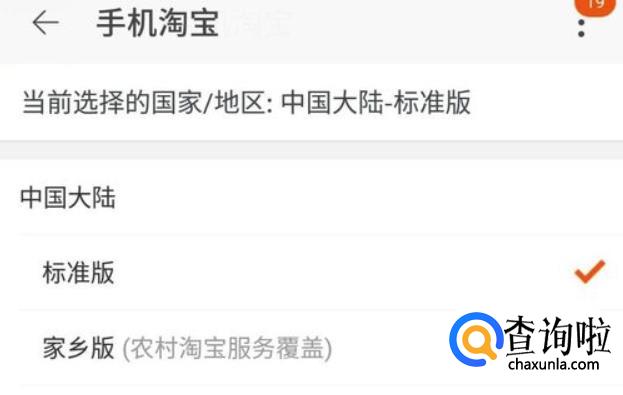 这时候我们就可以设置淘宝模式了,选择中国大陆,类目下有两个淘宝版本,分别是标准版和家乡版,这个家乡版就是农村淘宝了,根据自己情况选择标准版就可以了。