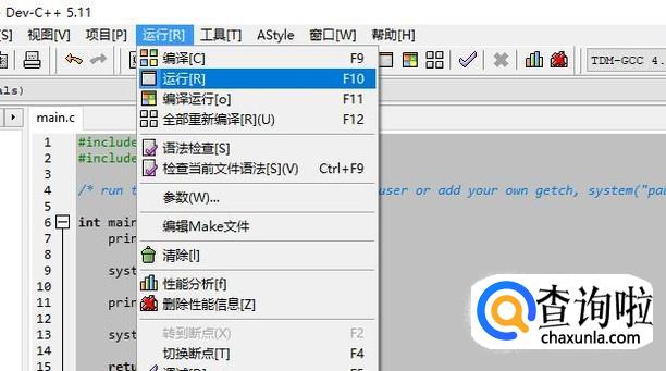 然后我们运行编写的C文件,如下图所示