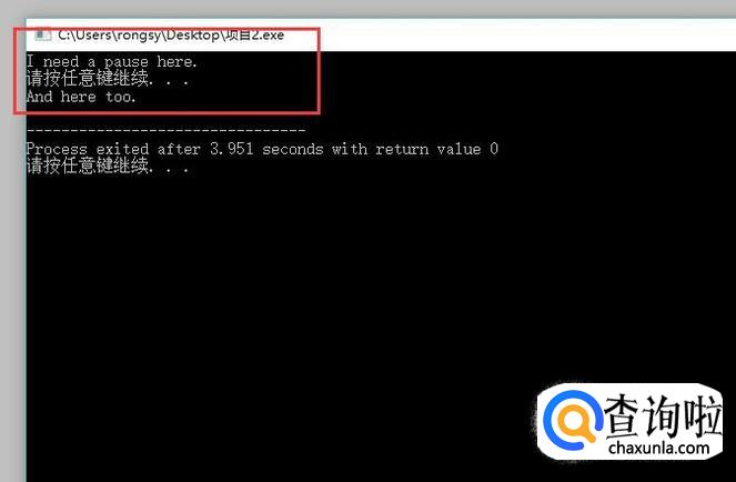 最后在弹出的CMD界面中我们可以看到输出一句话以后,有暂停效果,需要你按下任意键才能继续执行,如下图所示