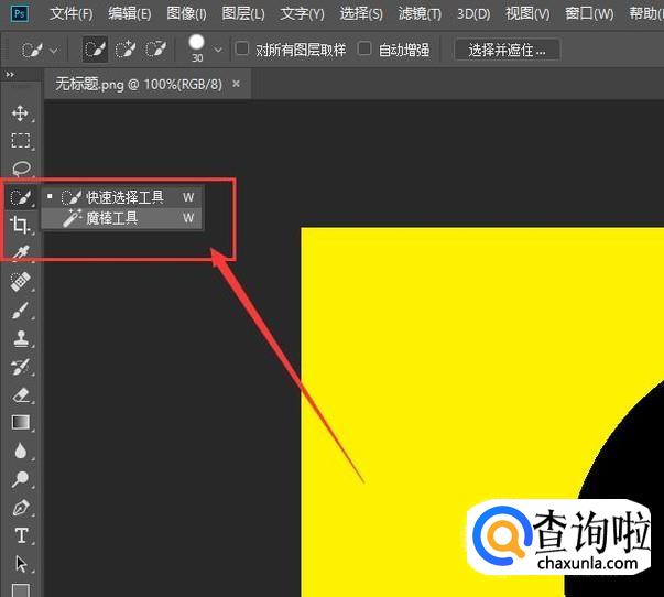 首先,请大家使用Photoshop软件打开要更改背景颜色的图片文件,然后点击Photoshop软件左侧工具栏中的“魔棒”工具。