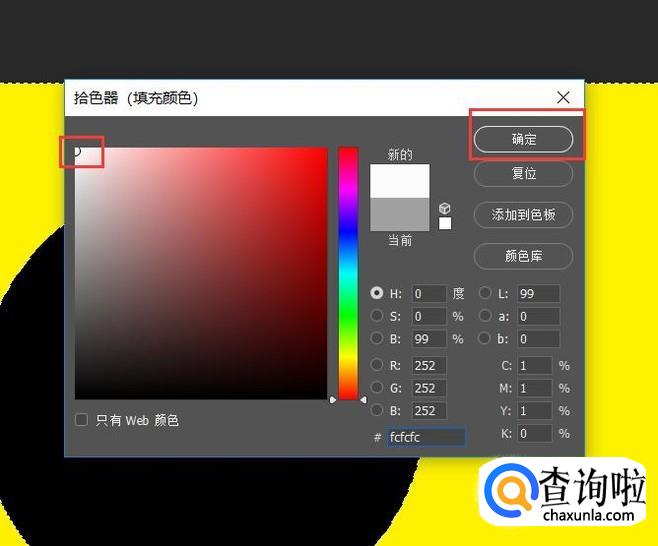 在颜色拾取器中,我们拾取白色,然后点击“确定”按钮,应用刚才的颜色填充内容。