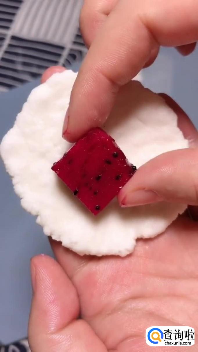 然后把我们喜欢的吃的水果包进面团,如下图所示。