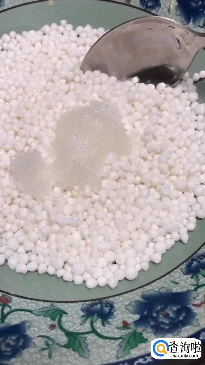 首先在碗内加入适量的西米,如下图所示。关于西米的用量大家可以根据自己家里面的人口来决定。