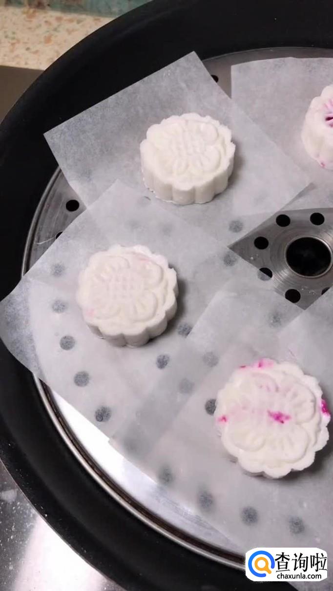 然后把做好的月饼放入锅中,开大火蒸20分钟,如下图所示。