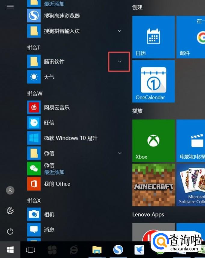 找到腾讯软件,然后我们点击边上的下拉箭头;