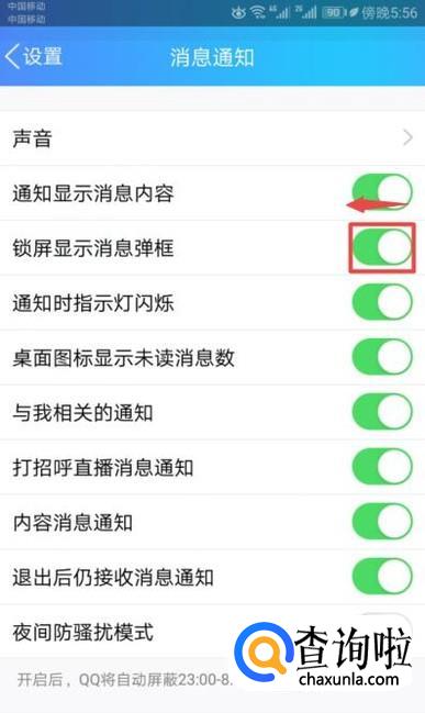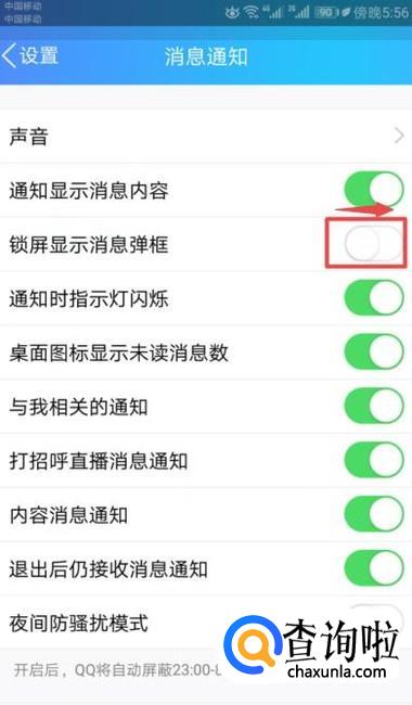 手机QQ锁屏显示消息弹窗取消关闭、开启教程