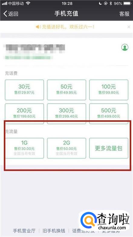 接着选择我们要充值的流量包,如下图所示。