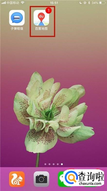 首先在我们的手机桌面上找到百度地图并点击它,如下图所示。