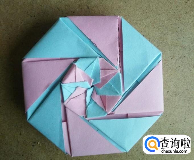 把一张纸沿对角线对折(两条对角线都要折一下)。