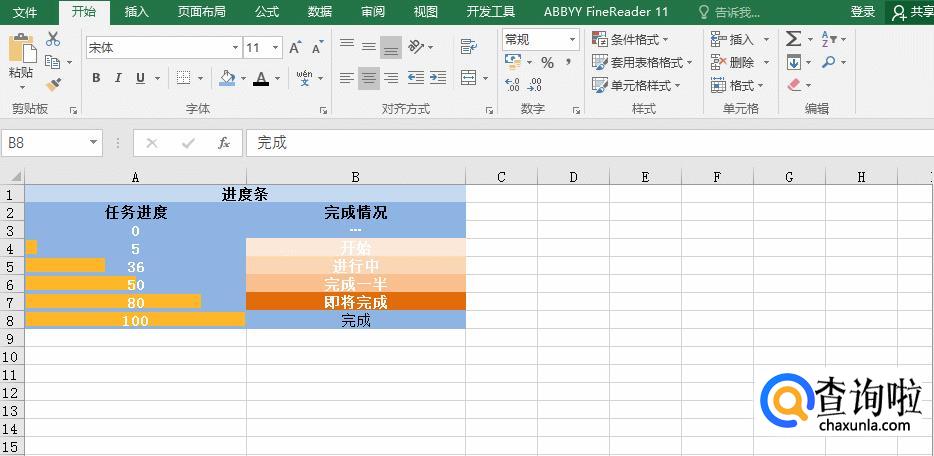 在Excel中只是用数字显示任务的进度是不是很枯燥乏味?小Q教你一招让你的Excel进度条变得更直观、更好看。