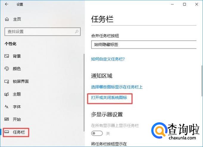 之后我们点击任务栏,然后我们点击打开或关闭系统图标;