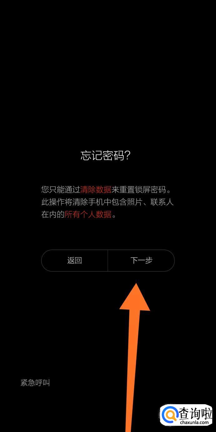 小米手机被锁定后,接着点击屏幕右下角的“忘记密码”字样即可。