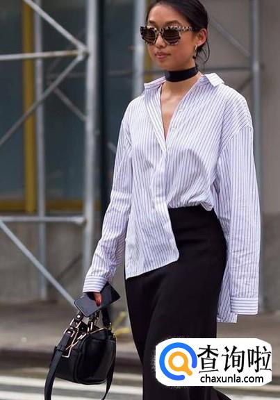 半塞式:将长一点的衬衣的一侧衣角塞入裤中,即使很随意的街拍,都能让你很亮眼。