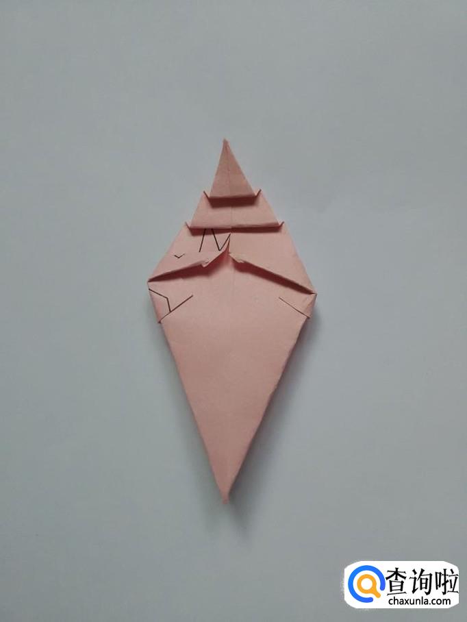 再把顶角往下折一段。