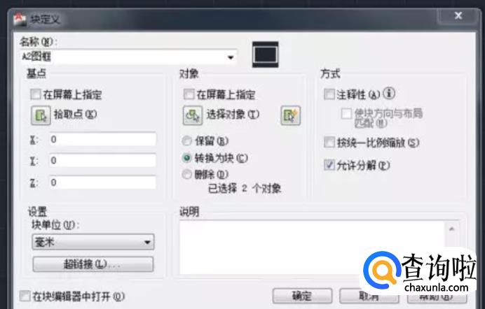 选择图框——按B键——设置标准图框未块并命名——确定。