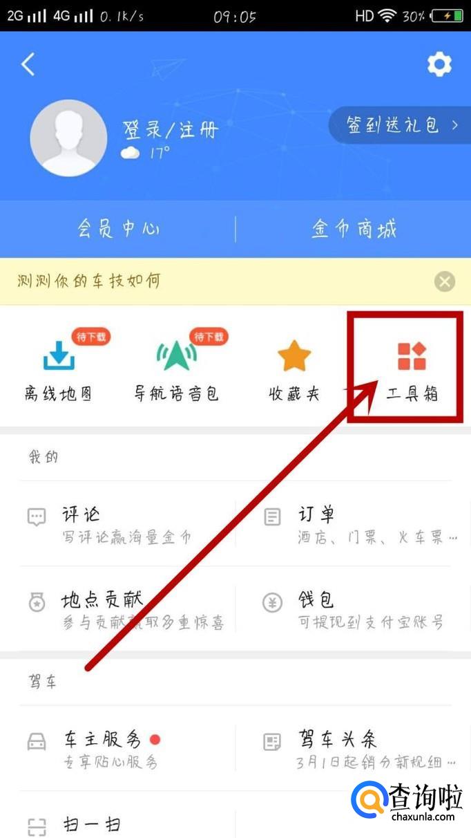 打开高德地图,进入高德地图首页,点击左上角的头像,如图所示。