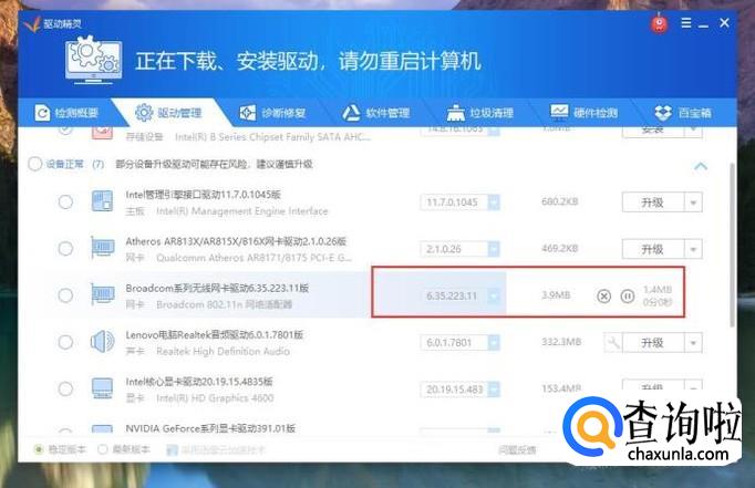接下来,软件将自动下载并安装无线网卡设备的驱动程序。