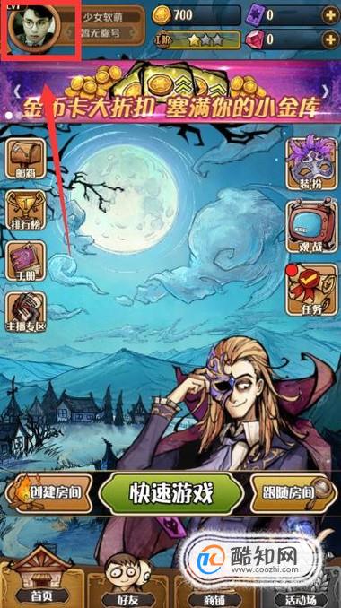 再进入登录到狼人杀的游戏页面后,点击页面左上角头像这一项,要是你是刚登录的新账号,头像会显示为空白的,需要你上传好看的头像。